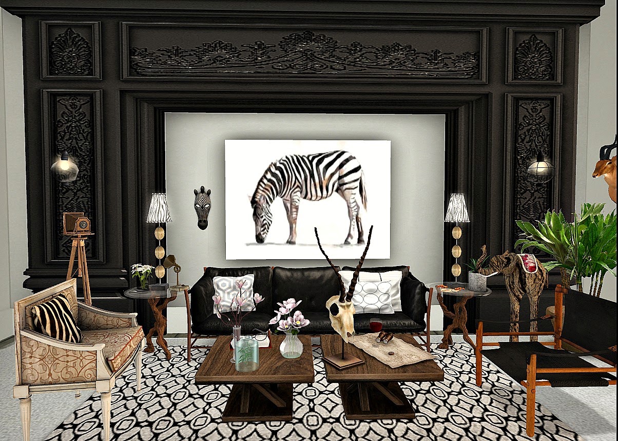 The Loft - Neo Mirror White, Alexand Porter Chair Blue, Queen Chess Piece, King Chess Piece, Mara Leather Tray, Mara Mink Pouf